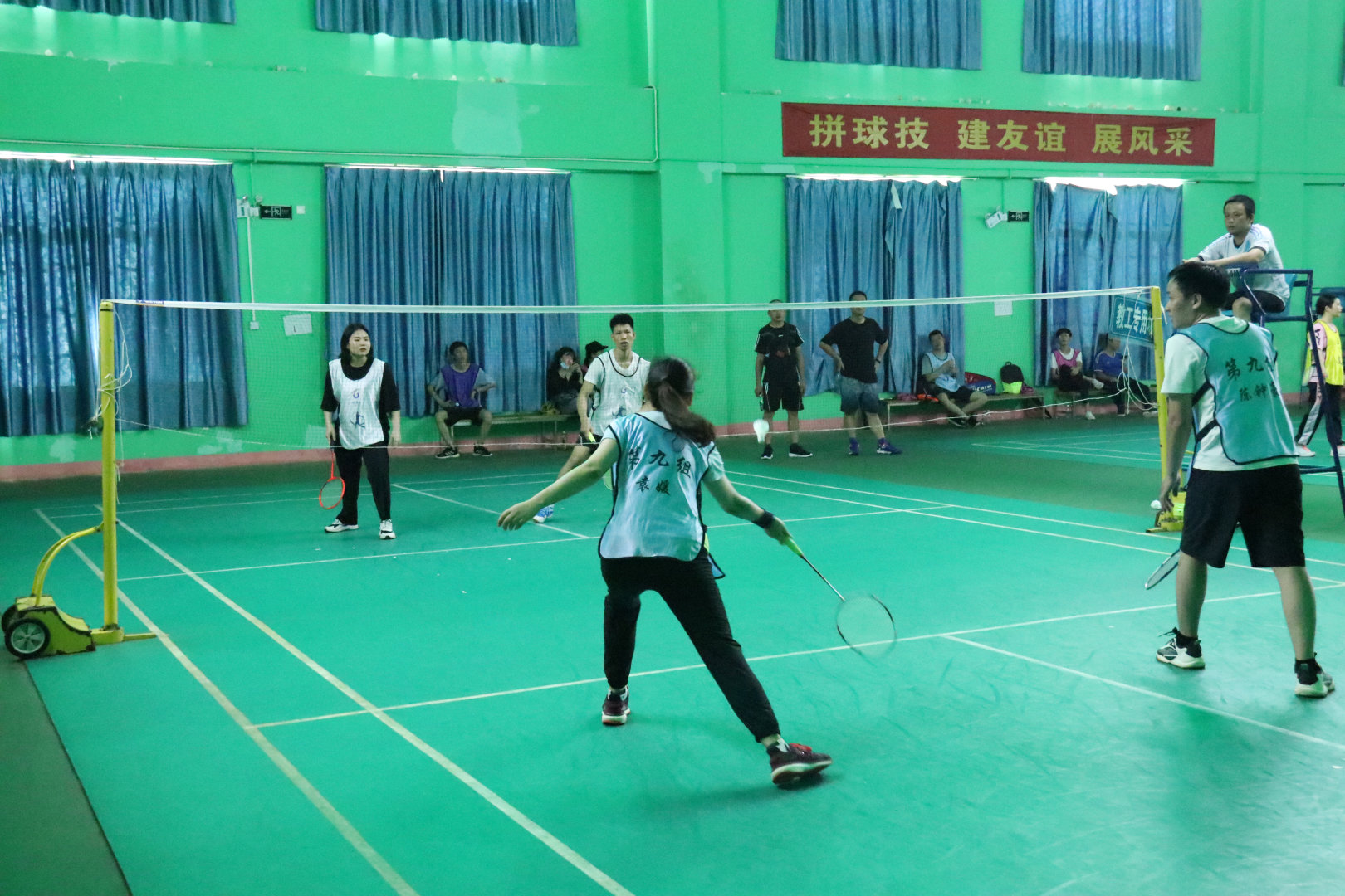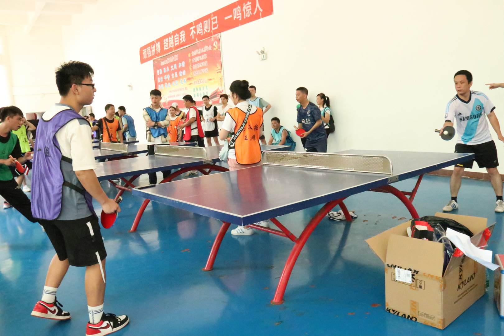 中午进行了体力补充,稍作休息,下午的赛程就开始了。下午的赛程在体育馆进行,项目有羽毛球赛、乒乓球赛和面粉传递比赛,各小组在组长的带领下,积极应战,在面粉传递比赛中各组进行了很好的团队协作,名次有先后,但大家都感受到了团队的力量,坚信没有完美的个人只有完美的团队。