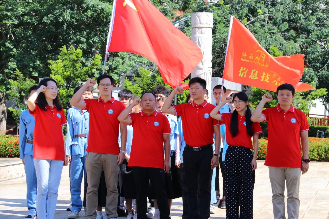 首先,全体人员列队在刻有徐向前元帅亲笔题词的“琼崖抗日先锋”基座前,望着屹立在上的那一尊手握钢枪的独立队战士铜像,满怀深切崇敬。在员工党支部书记代晓明领誓下,全体党员面向党旗庄严宣誓,以铿锵有力的声音重温入党誓词,不忘入党初心。
