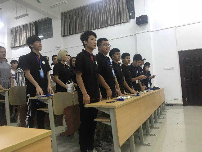 大会开始,主持人先介绍大会历程。全体奏唱团歌。李云飞主席上台发言,以端正动机、一切以全工程全公司员工服务等几个方面来定位我们团学团学青。负责人唐图老师上台发言,欢迎各干事们进入这个“大家庭”你们的选择是极其正确的,团总支副书记王晨,以“一家人、互帮助、共团结”等方面告诫各干事们传承工程的优良传统。