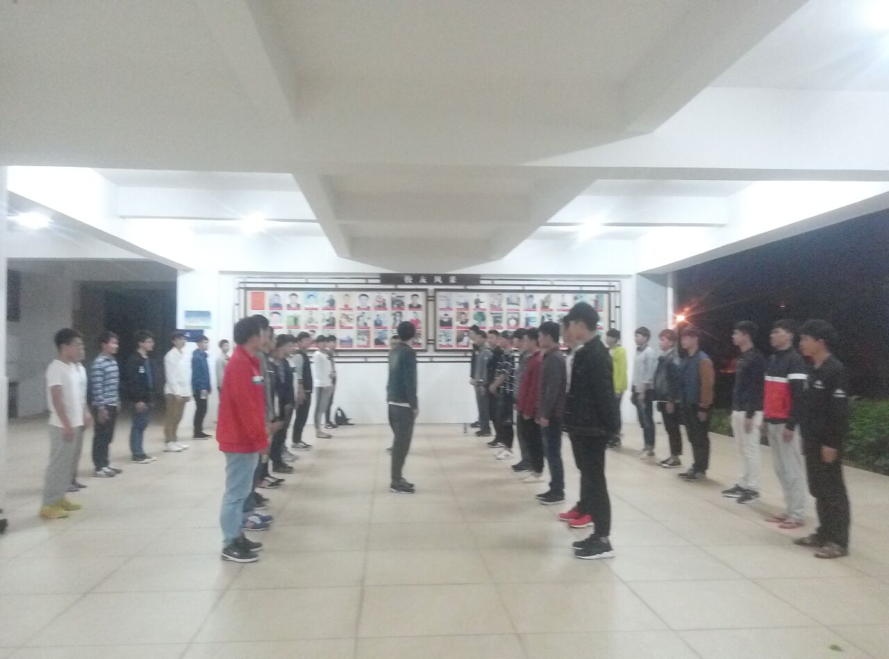 7:30分各班在班长的带领下到了指定位置训练礼仪操,有的班级在练手势礼、有的班级在练握手礼、有的班级学的比较快已经全部练完,现在对动作的规范性做强化训练。8点整,主席团各成员到达二栋楼下,开始一个班级一个班级的走访检查。首先让在训练的班级对这两周所学的礼仪操内容从头展示了一遍,主席团成员对班级所呈现的问题进行现场指导,并做示范为员工们演示。对于没练完的班级鼓励加劲,希望他们能尽快的学完礼仪操,然在进行细节的调制加强训练,不懂得动作要尽快提出来,学姐学长为他们答疑解惑。