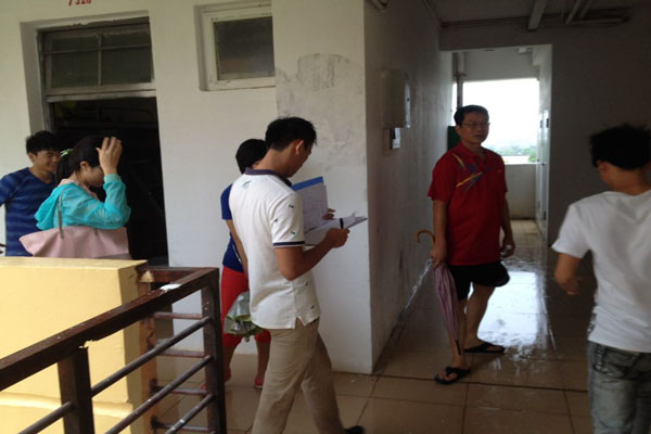 10月5日讯(工程技术公司 李京京报道)今年第22号台风“彩虹”海南东部沿海地区登陆,最大风力达到了12-14级,由于第22号强台风“彩虹”的影响,海口出现大风暴雨天气,给广大师生生活带来了较大影响。公司领导心系大家安全,于是由陈继敏书记带队,在14级辅导员陈亚芳老师、代晓明老师,15级辅导员肖洁老师及员工会干部的陪同下,对公司全体员工宿舍进行了宿舍走访慰问,关心同学们的状况,给同学们送去了温暖。