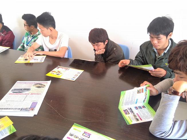 最后,梁老师向在场的同学派发了我系刚刚印制出来的2014年招生简章,同学们拿到手上细细阅读并表示在假期会将报考消息、公司的学习情况及报考注意事项传达给母校的学弟学妹们。